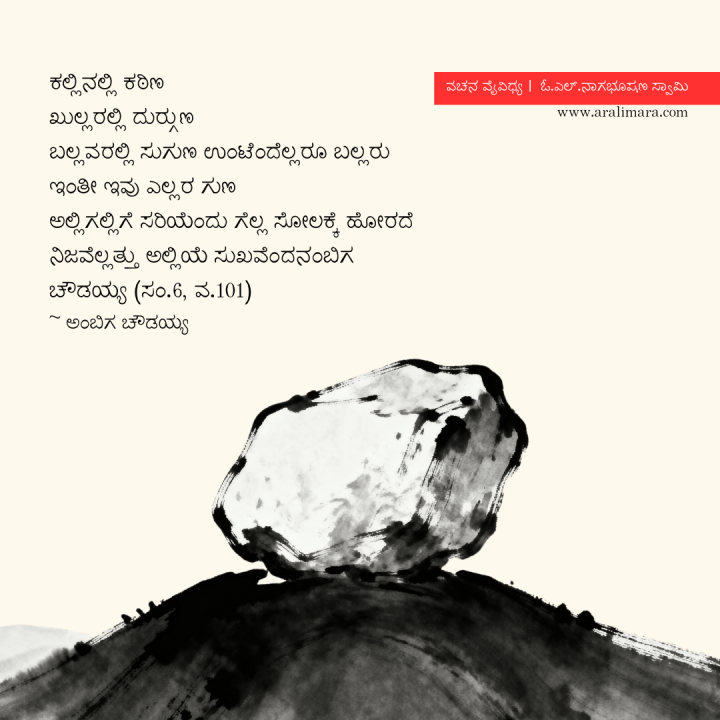 ಅಂಬಿಗ ಚೌಡಯ್ಯನವರ ವಚನ. ಕಲ್ಲಿನಲ್ಲಿ ಕಾಠಿಣ್ಯವಿದೆ, ಕೆಟ್ಟವರಲ್ಲಿ ದುರ್ಗುಣ ಇದೆ, ಬಲ್ಲವರಲ್ಲಿ ಸದ್ಗುಣ ಇದೆ ಅನ್ನುವುದು ಎಲ್ಲರಿಗೂ ಗೊತ್ತಲ್ಲವೇ? ಸರಿ ಮತ್ತೆ. ಇದು ಸರಿ, ಅದು ತಪ್ಪು ಎಂಬ ಹೋರಾಟವೇಕೆ? ಇರುವ ನಿಜವನ್ನು ಇರುವಂತೆ ಒಪ್ಪಿದಾಗಲೇ ಸುಖ ಅಲ್ಲವೇ?