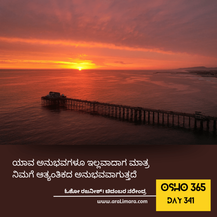 ನನ್ನ ಇಡೀ ಪ್ರಯತ್ನವೇ ಅನುಭವಗಳ ವಲಯದಿಂದ ನಿಮ್ಮನ್ನು ಆಚೆ ಕರೆದುಕೊಂಡು ಹೋಗುವುದು. ಏಕೆಂದರೆ ಆಗ ಮಾತ್ರ ನೀವು ಮೈಂಡ್ ನ ಮೀರುವುದು, ಮೌನವನ್ನು ಉಳಿಸಿಕೊಳ್ಳುವುದು ಸಾಧ್ಯವಾಗುತ್ತದೆ. ಯಾವಾಗ ನೀವು ಅನುಭವಗಳಿಂದ ರಹಿತರಾಗುತ್ತೀರೋ ಆಗ ನಿಮ್ಮೊಳಗೆ ಮೌನ ನೆಲೆಯಾಗುತ್ತದೆ. ಯಾವಾಗ ಆನಂದ ಇರುವುದಿಲ್ಲವೋ ಆಗ ನೀವು ಆನಂದದಲ್ಲಿ ನೆಲೆಯಾಗುತ್ತೀರಿ, ಏಕೆಂದರೆ ಆನಂದ ಅನುಭವವಲ್ಲ; ನಿಮಗೆ ಯಾವತ್ತೂ ಆನಂದದಲ್ಲಿರುವ (bliss) ಅನುಭವವಾಗುವುದಿಲ್ಲ. ಹಾಗೇನಾದರೂ ಆಗುತ್ತಿದೆಯಾದರೆ ಅದು ಖುಶಿ ( happiness) ಮಾತ್ರ. ಅದು ಸಮಯದ ಜೊತೆ ಕಳೆದು ಹೋಗುತ್ತದೆ ಮತ್ತು ನೀವು ಅಂಧಕಾರದಲ್ಲಿ ಕಳೆದುಹೋಗುತ್ತೀರ.