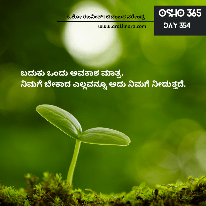 ಬದುಕು, ತನ್ನಷ್ಟಕ್ಕೆ ತಾನು ತಟಸ್ಥ, ನಾವು ಅದನ್ನ ಸುಂದರವಾಗಿಸುತ್ತೇವೆ, ಅಥವಾ ಕುರೂಪಿಯಾಗಿಸುತ್ತೇವೆ; ಬದುಕು ನಮ್ಮ ಎನರ್ಜಿಯ ಕಾರಣವೇ ರೂಪಿತವಾಗುವ ಸಂಗತಿ ~ ಓಶೋ ರಜನೀಶ್; ಕನ್ನಡಕ್ಕೆ: ಚಿದಂಬರ ನರೇಂದ್ರ