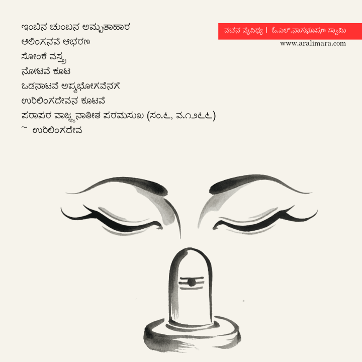 ಹಿತವಾದ ಚುಂಬನವು ಸಾವನ್ನು ಇಲ್ಲವಾಗಿಸುವ ಆಹಾರ, ಅಪ್ಪುಗೆಯೇ ಆಭರಣ, ಸ್ಪರ್ಶವೇ ವಸ್ತ್ರ, ನೋಟವೇ ಮಿಲನ, ಒಡನಾಟವೇ ಎಂಟು ಬಗೆಯ ಭೋಗ, ಇನ್ನು ನಿಜವಾಗಿ ಉರಿಲಿಂಗದೇವನ ಕೂಡಿದರೆ ಅದು ಪರವನ್ನೂ ಮೀರುವ, ಮಾತು ಮನಸುಗಳ ಗ್ರಹಿಕೆಗೆ ಸಿಗದ ಪೂರ್ಣ ಸುಖ.