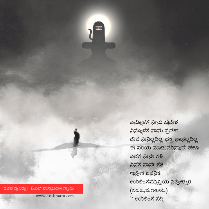 ನೀನು ನನ್ನ ಒಳಹೊಕ್ಕಿರುವೆ, ನಾನು ನಿನ್ನ ಒಳಹೊಕ್ಕಿರುವೆ. ನೀನಲ್ಲದ ದೇವರಿಲ್ಲ, ನಾನಲ್ಲದ ಭಕ್ತನಿಲ್ಲ. ಹೀಗೆ ಪೂಜೆ ಮಾಡುವವರು ಯಾರಿದ್ದಾರೆ? ನನಗೆ ನೀನೇ ಗತಿ, ನಿನಗೆ ನಾನೇ ಗತಿ. ಹೀಗಿರುವಾಗ ನಮ್ಮಿಬ್ಬರ ಮಧ್ಯೆ ಈ ತೆರೆ, ಅಡಚಣೆ ಯಾಕೆ?