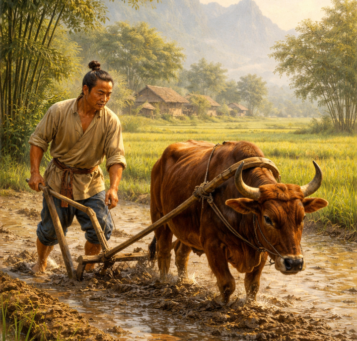 ಚೀನಾದಲ್ಲಿ ಚೌ ಆಡಳಿತ ಕಾಲದಲ್ಲಿ ಸುಂಗ್ ಹೆಸರಿನ ಹಳ್ಳಿಲಿ ಒಬ್ಬ ರೈತ ಇದ್ದ, ಅವ್ನು ಯಾವಾಗ್ಲೂ ಒರಟಾದ ಸೆಣಬಿನ ಬಟ್ಟೆ ಮಾತ್ರ ತೊಟ್ಕೋತ್ತಿದ್ದ. ಚಳಿಗಾಲದಲ್ಲೂ ಅವ್ನು ಬೇರೆ ಬಟ್ಟೆ ಹಾಕ್ಕೊಳ್ತಾ ಇರ್ಲಿಲ್ಲ. ಗದ್ದೇಲಿ ಹೊಲ ಉಳುವಾಗ ಬಿಸಿಲಲ್ಲಿ ತನ್ನ ಮೈ ಬೆಚ್ಚಗೆ ಮಾಡ್ಕೊಳ್ತಿದ್ದ.