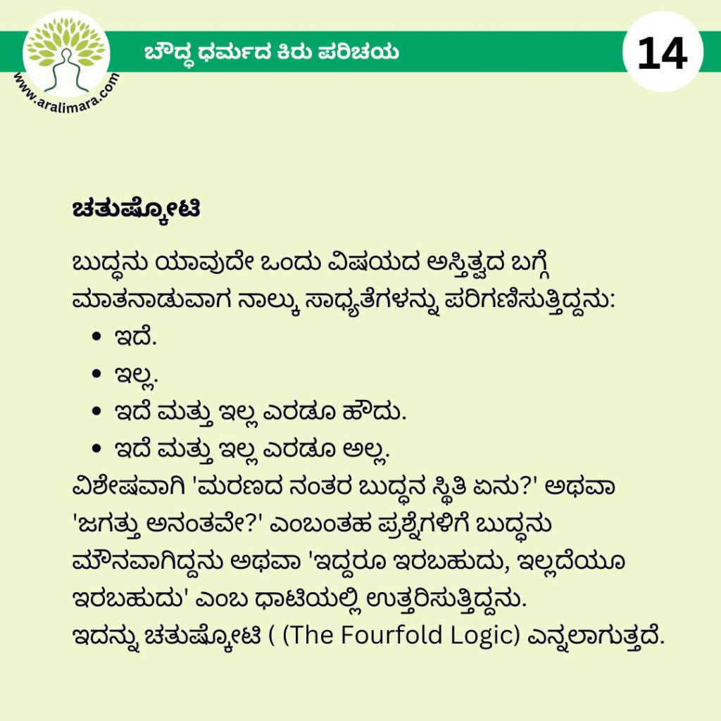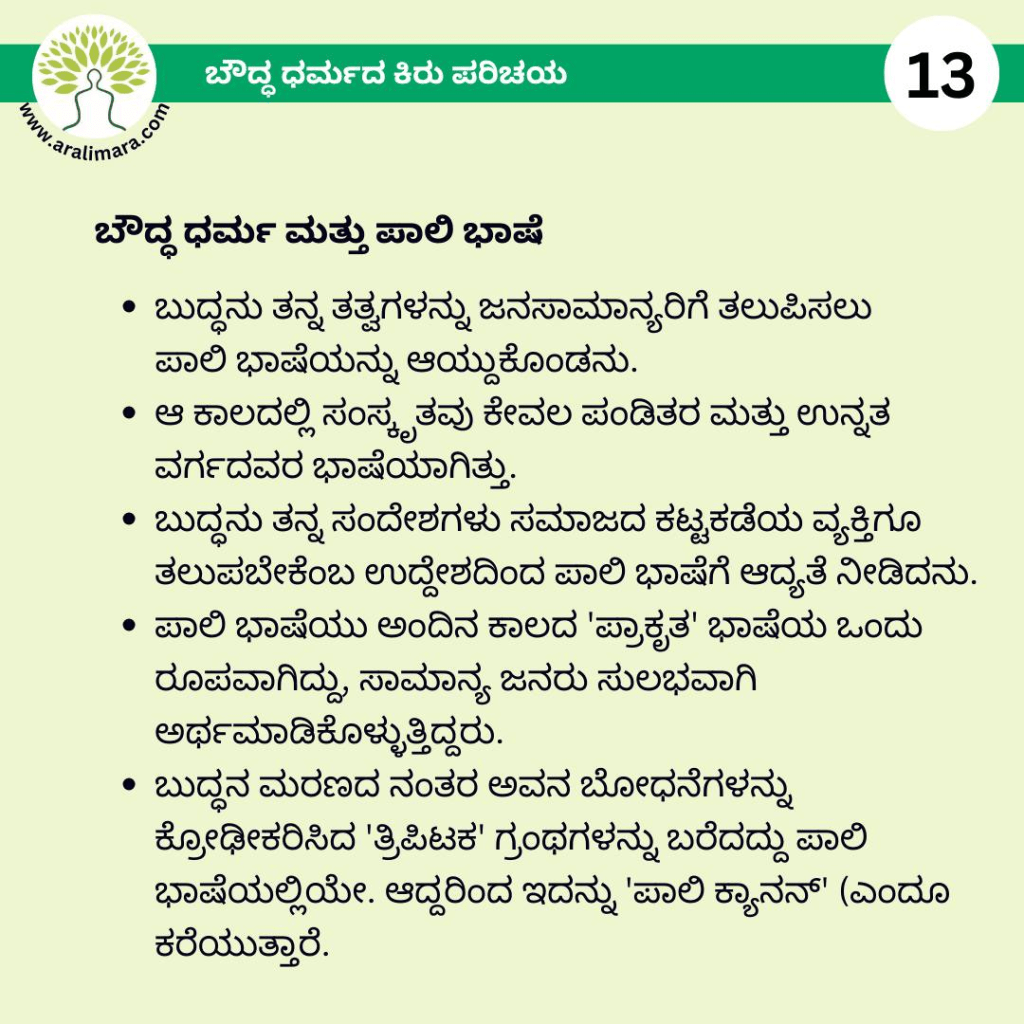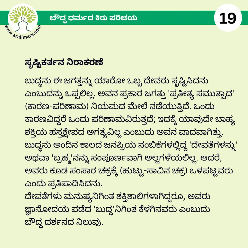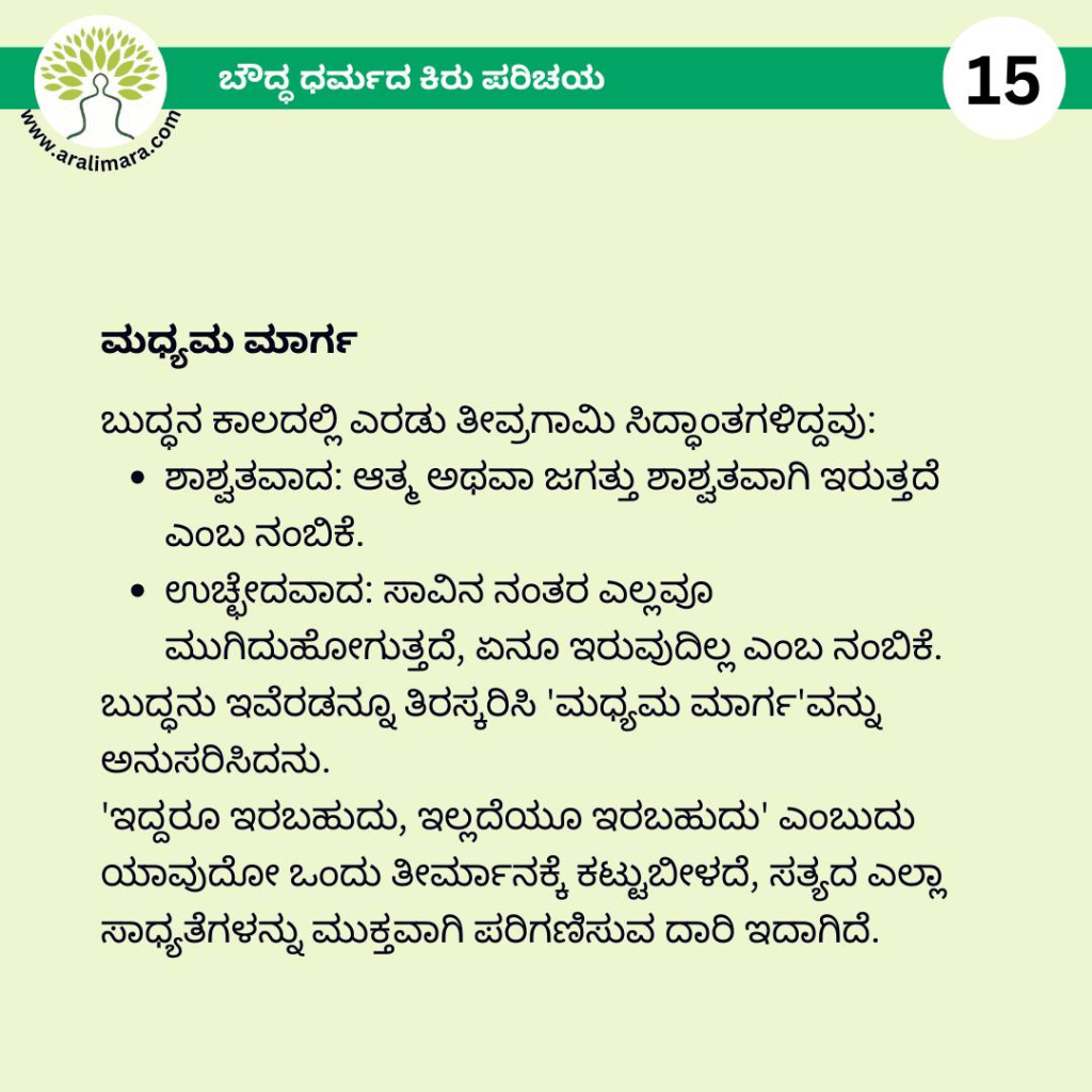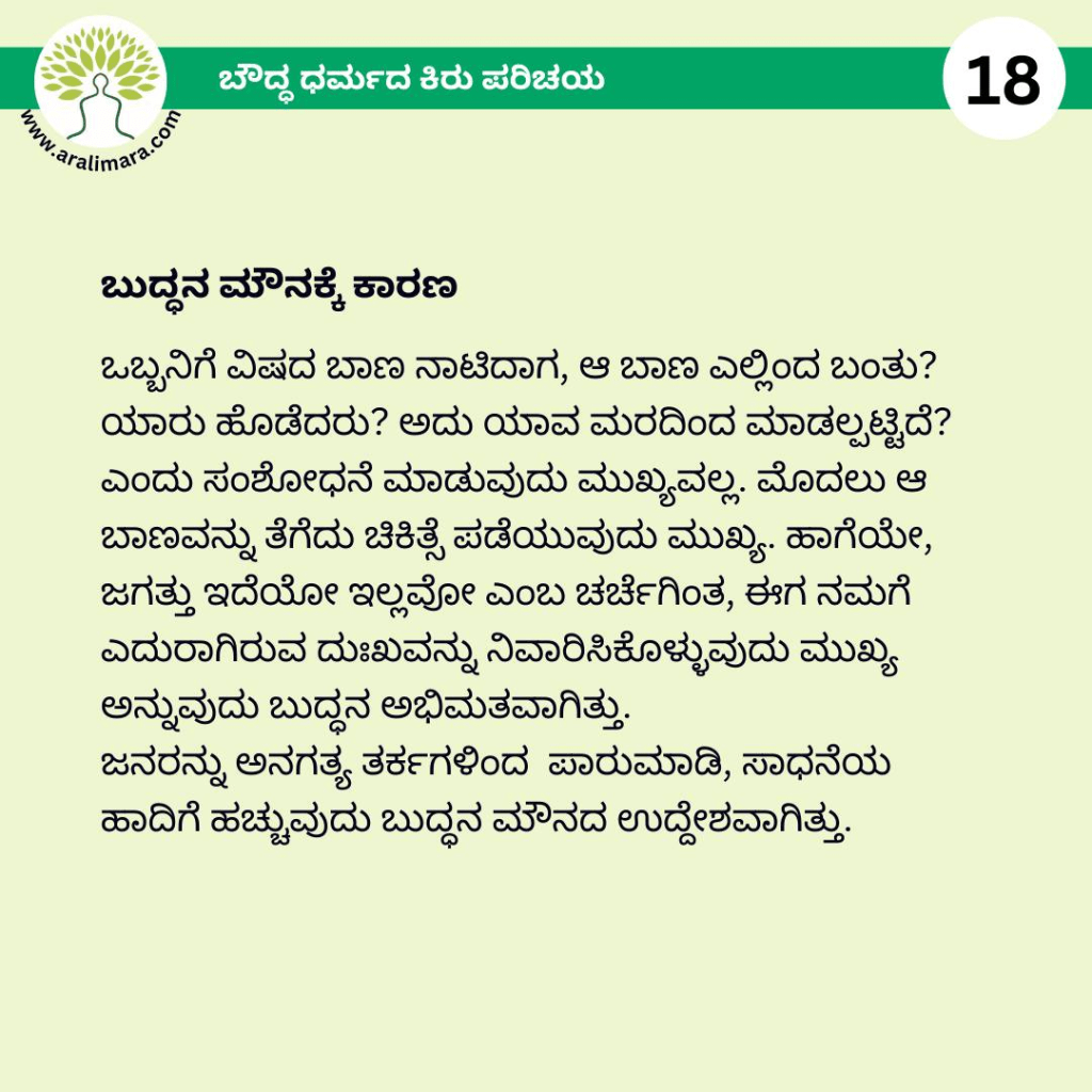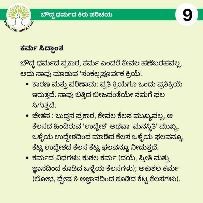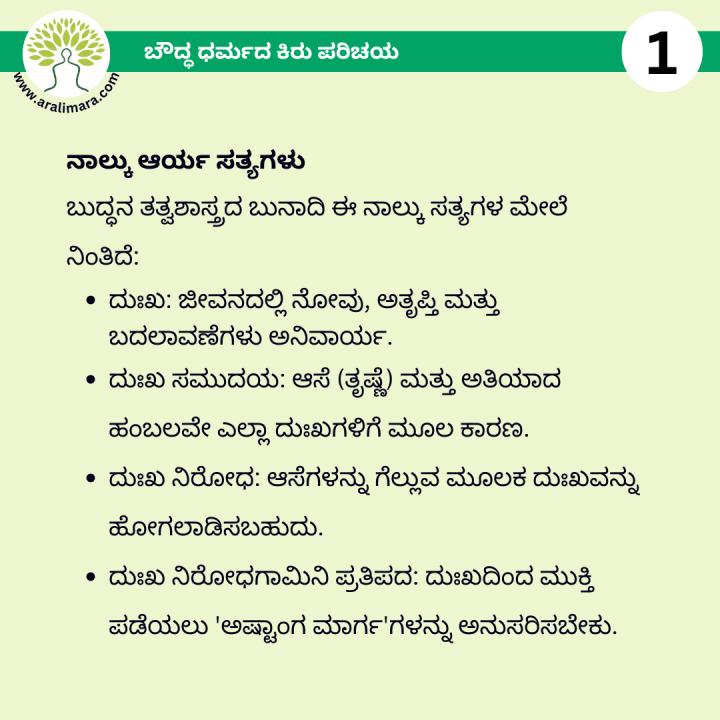 ಬೌದ್ಧಧರ್ಮದ ಕಿರುಪರಿಚಯ : ಅರಳಿಮರ Posters ಫೆಬ್ರವರಿ 13, 2026 By ಅರಳಿ ಮರ ಬೌದ್ಧ ಧರ್ಮದ ಮೂಲ ತತ್ವಗಳ ಕಿರು ಪರಿಚಯ ಇಲ್ಲಿದೆ… Share this:Tweet Email a link to a friend (Opens in new window) Email Share on Telegram (Opens in new window) Telegram Share on WhatsApp (Opens in new window) WhatsApp ಇನ್ನಷ್ಟು ಮುದ್ರಿಸಿ (Opens in new window) Print Share on Reddit (Opens in new window) Reddit Share on TumblrLike ಲೋಡ್ ಆಗುತ್ತಿದೆ... Related About ಅರಳಿ ಮರ ಆಧ್ಯಾತ್ಮ, ವ್ಯಕ್ತಿತ್ವ ವಿಕಸನ ಮತ್ತು ಜೀವನ ಶೈಲಿ
