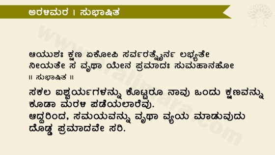 ಸಮಯವನ್ನು ವ್ಯರ್ಥ ಮಾಡುವುದು ದೊಡ್ಡ ಪ್ರಮಾದವೇ ಸರಿ : ದಿನದ ಸುಭಾಷಿತ