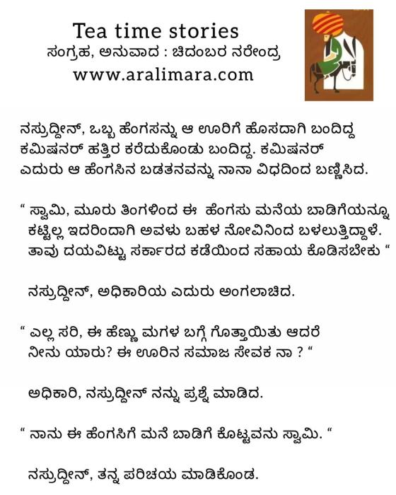 ಬಾಡಿಗೆದಾರಳಿಗೆ ನಸ್ರುದ್ದೀನನ ಸಹಾಯ: tea time story