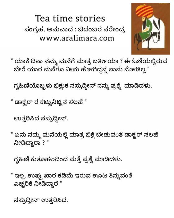 ನಸ್ರುದ್ದೀನನಿಗೆ ವೈದ್ಯರ ಸಲಹೆ : Tea time story