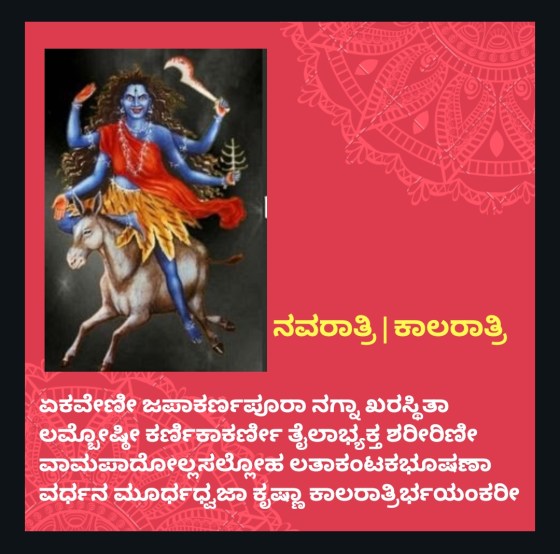 ನವರಾತ್ರಿಯ ಏಳನೆಯ ದಿನ ಕಾಲರಾತ್ರಿ ದೇವಿಯನ್ನು ಪೂಜಿಸಲಾಗುತ್ತದೆ.