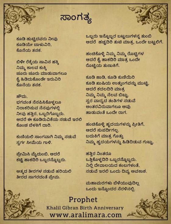 ಸಾಂಗತ್ಯ : ಜಿಬ್ರಾನ್ ಕಾವ್ಯ