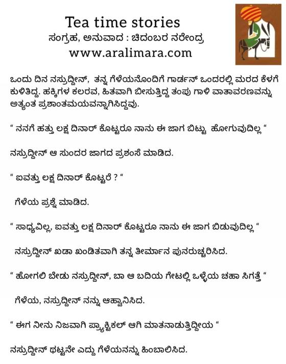 ನೆಮ್ಮದಿಯ ದಿನ! : tea time stories