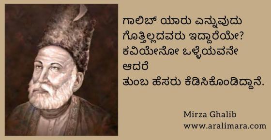 ಗಾಲಿಬನ ಒಂಭತ್ತು ಕಾವ್ಯ ಹನಿಗಳು ಇಂದು ಶಾಯರಿ ಲೋಕದ ಧ್ರುವತಾರೆ ಮಿರ್ಜಾ ಗಾಲಿಬ್ ಹುಟ್ಟಿದ ದಿನ. ಈ ಸಂದರ್ಭದಲ್ಲಿ ಗಾಲಿಬನ ಕೆಲವು ಶಾಯರಿ ಚಿತ್ರಿಕೆ ನಿಮಗಾಗಿ…