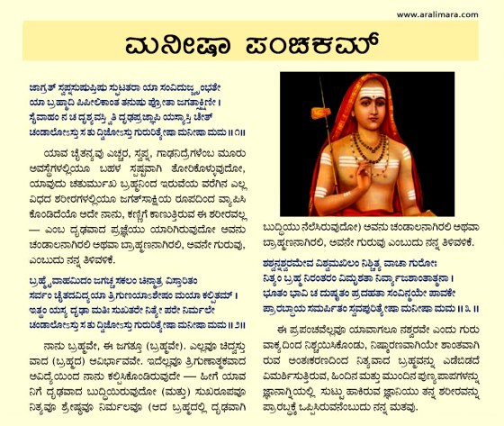 ಶ್ರೀ ಶಂಕರಾಚಾರ್ಯರ ‘ಮನೀಷಾ ಪಂಚಕಮ್’