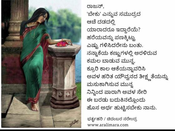 ಆಕರ: ಭರ್ತೃಹರಿಯ ಶೃಂಗಾರ ಶತಕ | ರಚನೆ: ಚಿದಂಬರ ನರೇಂದ್ರ