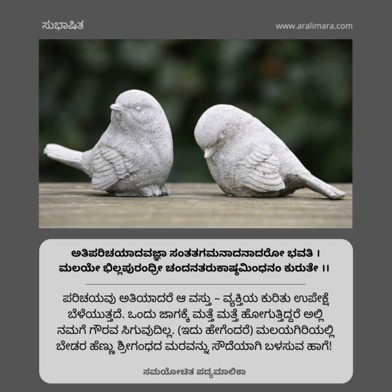 ಅತಿಯಾದ ಪರಿಚಯ ಒಳ್ಳೆಯದಲ್ಲ : ಇಂದಿನ ಸುಭಾಷಿತ