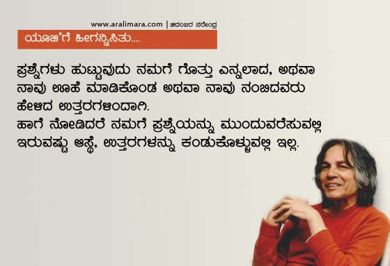 ವಸ್ತುವನ್ನು ಅದು ಇರುವ ಹಾಗೇ ನೋಡಲು ಸಾಧ್ಯವೇ? : ಯೂಜಿ ಜೊತೆ ಮಾತು ಕಥೆ #6 ನೀವು ಒಂದು ವಸ್ತುವನ್ನ ನೋಡಿದ್ದೀರಿ ಎಂದರೆ ನೀವು ಈಗಾಗಲೇ ಆ ವಸ್ತುವಿನಿಂದ ದೂರವಾಗಿದ್ದೀರಿ ಎಂದೇ ಅರ್ಥ…